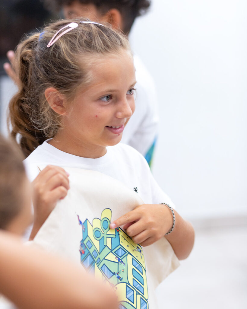 El cierre de la actividad estuvo marcado por un taller creativo donde cada niño diseñó su propia camiseta para el próximo curso de verano. Los diseños reflejaron mensajes y símbolos relacionados con el centro y las actividades que realizamos en este espacio.
