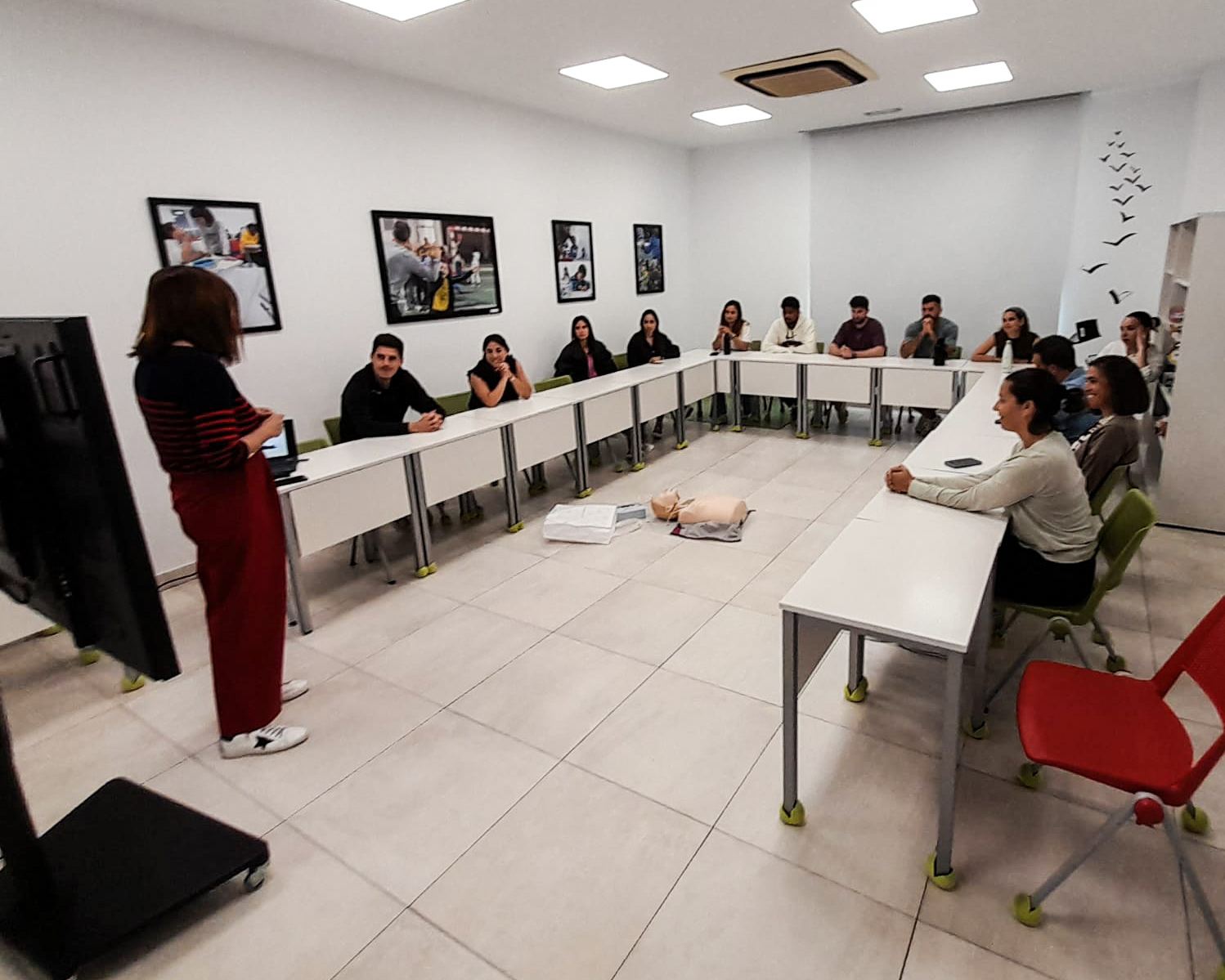 La donación incluyó además una formación exhaustiva para todo el equipo del Centro Fundación Rafa Nadal. La sesión formativa, conducida por expertos de Rojomed, abordó aspectos esenciales sobre cardiopatías, protocolos de actuación en situaciones de emergencia cardíaca y la correcta utilización del desfibrilador.