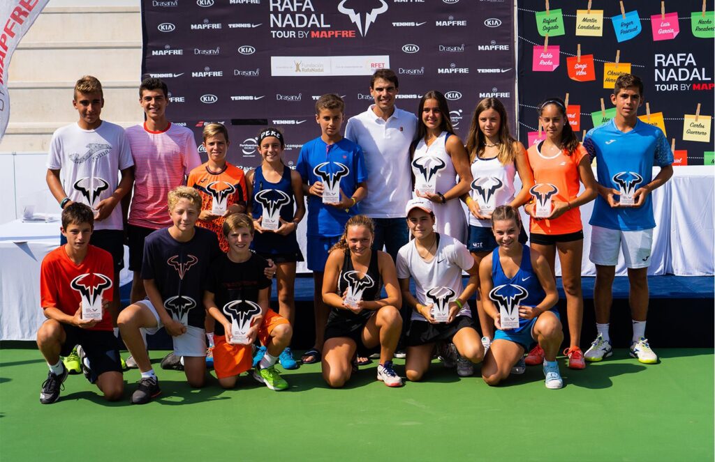 Rafael Nadal, presente tanto en el sorteo de los cuadros como en la entrega de premios, dirigió unas palabras a los participantes: “Recuerdo los años en los que participaba en torneos juveniles como unos de los mejores de mi vida; espero que vosotros estéis disfrutando también de esta experiencia gracias al Rafa Nadal Tour by Mapfre”. “Mucha suerte a todos y pasadlo muy bien, que es lo más importante”, añadió.