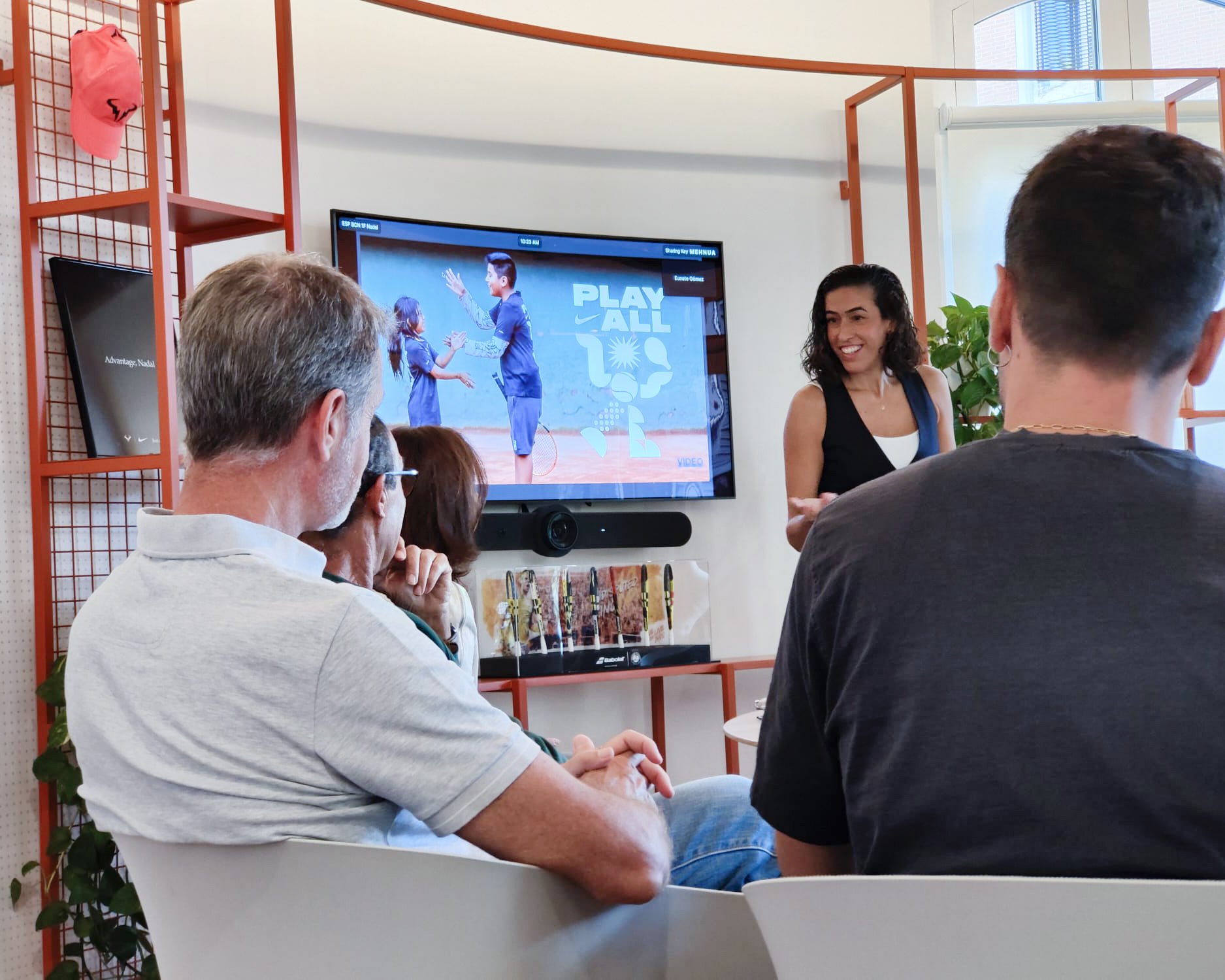 Nos trasladamos a un lugar muy especial: la «Sala Rafa Nadal» en las oficinas de nuestro aliado principal, Nike, en Barcelona. Se trata de un entorno inspirador y cargado de energía donde el equipo se ha sumergido en una jornada para conocer cada detalle del programa.